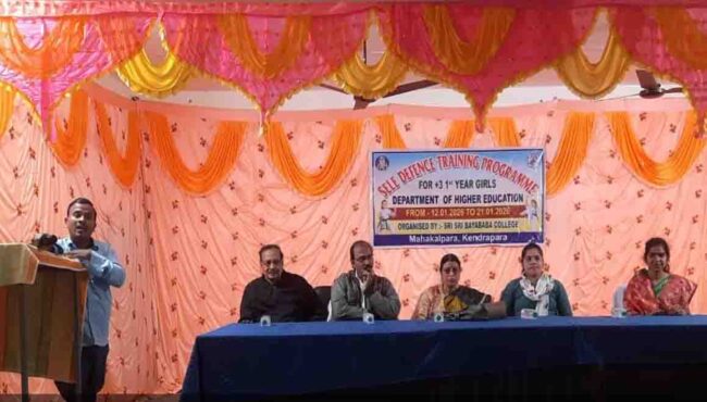 ମହାକାଳପଡ଼ା, ୧୩/୦୧, (ଓଡିଶା ଖବର) : ମହାକାଳପଡ଼ା ପଡା ବ୍ଲକ ର ସଦର ମହକୁମା ରେ ଅବସ୍ଥିତ ଶ୍ରୀ ଶ୍ରୀ ବାୟା ବାବା ମହାବିଦ୍ୟାଳୟ ତରଫରୁ ୮ ଦିନିଆ ବାଳିକା ଆତ୍ମ ରକ୍ଷା ତାଲିମ ଶିବିର ସୋମବାର ଉଦଘାଟିତ ହୋଇଯାଇଛି l ମହାବିଦ୍ୟାଳୟ ର ଅଧ୍ୟକ୍ଷା ସୁଲୋଚନା ଦାସ ପ୍ରଦୀପ ପ୍ରଜ୍ବଳନ କରି ଶିବିର କୁ ଆନୁଷ୍ଠାନିକ ଭାବେ ଉଦ୍ଘାଟନ କରିଥିଲେ l ସହଯୋଗୀ ଭାବେ ମହାବିଦ୍ୟାଳୟ ର ଆତ୍ମ ରକ୍ଷା କମିଟି ର ସଂଯୋଜିକା ପ୍ରଫେସର ଇତିଶ୍ରୀ ସେଠି,, କମିଟି ସଦସ୍ୟ /ସଦସ୍ୟା ପ୍ରଫେସର ଜୁହି ପଣ୍ଡା, ଆନିଗ୍ରେସ ୱାଡ଼କୋ ଆଦି ମଂଚାସୀନ ଥିଲେ l ମଂଚାସୀନ ଅଧ୍ୟାପକ /ଅଧ୍ୟାପିକା ଓ ଅଧ୍ୟକ୍ଷ ଆଦି ମହାବିଦ୍ୟାଳୟରୁ ଉଚ୍ଚ ମାଧ୍ୟମିକ ଶିକ୍ଷା ସାରି ନବାଗତ ଭାବେ ଆସିଥିବା +୩ ପ୍ରଥମ ବର୍ଷ ର ଛାତ୍ରୀ ମାନଙ୍କ ସହିତ ଆତ୍ମରକ୍ଷା କୌଶଳ ସମ୍ବନ୍ଧୀୟ ବିଭିନ୍ନ ଦିଗ ଉପରେ ଆଲୋଚନା କରିଥିଲେ l ମହିଳା ସୁରକ୍ଷିତ ରହିଲେ ଶୃଙ୍ଖଳିତ ଓ ମାର୍ଜିତ ସମାଜ ଗଠନ ରେ ବେଶ ସହାୟ ହେବ ଏବଂ ଆଇନ ଶୃଙ୍ଖଳା ପରିସ୍ଥିତି ରେ ସୁଧାର ବି ଆସିପାରିବ ବୋଲି ମଂଚାସୀନ କାର୍ଯ୍ୟକର୍ତ୍ତା ମାନେ ମତ ରଖିଥିଲେ l ପରେ ଶିବିରାର୍ଥୀ ମାନଙ୍କୁ ମାଷ୍ଟର ଟ୍ରେନର ସସ୍ମିତା ସାହୁ ପ୍ରଥମ ଦିବସୀୟ ତାଲିମ କାର୍ଯ୍ୟକ୍ରମ ଆରମ୍ଭ କରିଥିଲେ l ତାଲିମ ର ପ୍ରଥମ ଦିବସ ଶେଷରେ ପ୍ରଫେସର ବୈକୁଣ୍ଠ ବିହାରୀ ଜେନା ସଭିଙ୍କୁ ଧନ୍ୟ ବାଦ ଅର୍ପଣ କରିଥିଲେ l ଉଚ୍ଚ ଶିକ୍ଷା ବିଭାଗ ତରଫରୁ ଚଳିତ ମାସ ୧୨ରୁ ଆୟୋଜିତ ବାଳିକା ଆତ୍ମରକ୍ଷା ତାଲିମ କାର୍ଯ୍ୟକ୍ରମ ୨୧ପର୍ଯ୍ୟନ୍ତ ଜାରି ରହିବ ବୋଲି ମହାବିଦ୍ୟାଳୟ ତରଫରୁ ଜଣାପଡିଛି l