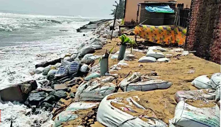 ଏରସମା ରାମତରା ନିକଟରେ କୂଳ ଲଂଘି ଗାଁ ଭିତରକୁ ପଶିଛି ସମୁଦ୍ର ପାଣି