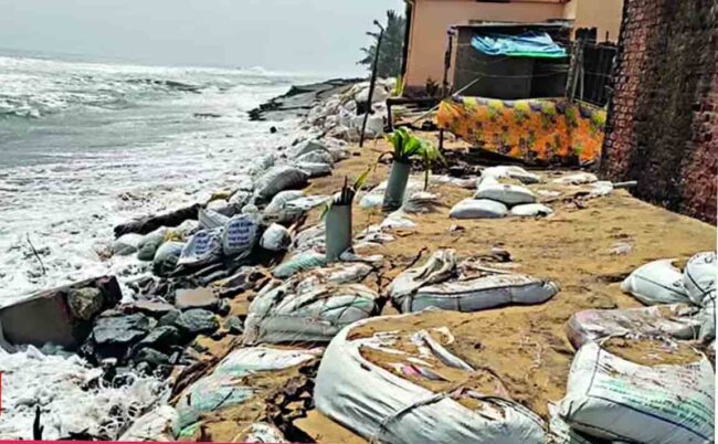 ଭୁବନେଶ୍ୱର, ୧୦/୦୯ : ଅଶାନ୍ତ ହୋଇ ଜନବସତି ଆଡକୁ ମାଡ଼ି ଆସିଲା ସମୁଦ୍ର । ଚାଷ ଜମିରେ ମାଡ଼ିଗଲା ଲୁଣି ପାଣି । ହୁ ହୁ ଗର୍ଜନ କରି ମାଡ଼ି ଆସୁଛି ପାଣି ଆଉ ଲୋକେ ଏହାକୁ ଦେଖି ଭୟଭୀତ ହୋଇଗଲେଣି । ଜଗତସିଂହପୁର ଜିଲ୍ଲା ଏରସମା ବ୍ଲକର ରାମତରା ନିକଟରେ କୁଳ ଲଙ୍ଗିଲା ସମୁଦ୍ର । କୂଳ ଲଂଘି ଗାଁ ଭିତରକୁ ପଶିଛି ସମୁଦ୍ର ପାଣି । ଭୟଭୀତ ଅଛନ୍ତି ଲୋକେ । ପ୍ରତି ପୂର୍ଣ୍ଣିମା ଓ ଅମାବାସ୍ୟା ତିଥିରେ ସମୁଦ୍ରରେ ଜୁଆର ଆସିଥାଏ । ଲଗାତାର ସମୁଦ୍ର କୂଳ ଲଙ୍ଗି ଗାଁ ଭିତରେ ପଶିବାର ଲାଗିଛି ସମୁଦ୍ର ପାଣି । ଗତ କିଛି ଦିନ ଭିତରେ ସମୁଦ୍ର ଗର୍ଭରେ ଶିଆଳି ଭିୟୁ ଟାୱାର ଲୀନ ହୋଇ ଯାଇଥିବା ବେଳେ ଏଵେ ଗାଁ ଭିତରେ ପାଣି ପଶିବା ଏକ ପ୍ରକାର ଲୋକଙ୍କ ଭିତରେ ଚିନ୍ତା ବଢ଼ାଇଛି ଲ ରାମତରା ନିକଟରେ ସମୁଦ୍ର କୂଳ ଲଙ୍ଘି ଗାଁ ଭିତରେ ପଶିଛି ପାଣି ଯାହା ଫଳରେ ରାମତରା, ପଦ୍ମପୁର, ଗଡ଼ ହରିଶପୁର ସରବନ୍ତ, କଳା ବେଦୀ ପରି ଅନେକ ଗାଁ ଏଵେ ସମୁଦ୍ର ଗର୍ଭ ରେ ଲୀନ ହେବାକୁ ବସିଲାଣି,ସରକାର ଯଦି ଏହା ଉପରେ ଧ୍ୟାନ ନଦେବେ ତାହେଲେ ଆଉ ଅଳ୍ପ ଦିନ ଭିତରେ ଏହି ଗାଁ ସବୁ ଇତିହାସ ପାଲଟି ଯିବ ବୋଲି ବୁଦ୍ଧିଜୀବୀମାନେ କହିଛନ୍ତି ।