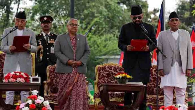 ନୂଆଦିଲ୍ଲୀ, ୨୭/୦୩ : ନ୍ୟାସନାଲ ଇଣ୍ଡିପେଣ୍ଡେଣ୍ଟ ପାର୍ଟି ନେତା ବାଲେନ ଶାହ ନେପାଳର ନୂଆ ପ୍ରଧାନମନ୍ତ୍ରୀ ଭାବରେ ଶପଥ ଗ୍ରହଣ କରିଛନ୍ତି। ସେ ନେପାଳର ୪୭ତମ ପ୍ରଧାନମନ୍ତ୍ରୀ ହୋଇଛନ୍ତି। ରାଷ୍ଟ୍ରପତି ରାମଚନ୍ଦ୍ର ପୌଡେଲ ସମ୍ବିଧାନର ଧାରା ୭୬(୧) ଅନୁଯାୟୀ ତାଙ୍କୁ ଏହି ପଦବୀରେ ନିଯୁକ୍ତ କରିଥିଲେ। ଆଜି ରାମନବମୀ ଅବସରରେ କାଠମାଣ୍ଡୁରେ ଏକ ମହା ସମାରୋହରେ ବାଲେନ ଶାହ ପ୍ରଧାନମନ୍ତ୍ରୀ ଭାବରେ ଶପଥ ଗ୍ରହଣ କରିଥିଲେ। ସ୍ଥାନୀୟ ସମୟ ସାଢେ ୧୨ଟା ରେ କାଠମାଣ୍ଡୁର ରାଷ୍ଟ୍ରପତି ଭବନ “ଶୀତଳ ନିବାସ” ରେ ତାଙ୍କୁ ଶପଥ ଗ୍ରହଣ କରାଯାଇଥିଲା।ଶପଥ ଗ୍ରହଣ ସମାରୋହ ହିନ୍ଦୁ ରୀତିନୀତି ଅନୁସାରେ ଅନୁଷ୍ଠିତ ହୋଇଥିଲା। ସାତ ଜଣ ଶଙ୍ଖଧାରୀ ଶଙ୍ଖ ଫୁଙ୍କି ସମାରୋହର ଆରମ୍ଭ କରିଥିଲେ। ଯାହାକୁ ଶୁଭ ଏବଂ ସୌଭାଗ୍ୟର ପ୍ରତୀକ ଭାବରେ ବିବେଚନା କରାଯାଏ। ଶପଥ ଗ୍ରହଣ ଉତ୍ସବ ପର ଏକ ଅତ୍ୟନ୍ତ ଭାବପ୍ରବଣ ମୁହୂର୍ତ୍ତ ଦେଖିବାକୁ ମିଳିଥିଲା। ଯେତେବେଳେ ସେ ମଧ୍ୟବର୍ତ୍ତୀକାଳୀନ ପ୍ରଧାନମନ୍ତ୍ରୀ ସୁଶୀଳା କାର୍କିଙ୍କୁ ଆଲିଙ୍ଗନ କରିଥିଲେ। ସେପଟେ ସୋସିଆଲ ମିଡିଆ ପ୍ଲାଟଫର୍ମ ଏକ୍ସ ରେ ବାଲେନ୍ଦ୍ର ଶାହଙ୍କୁ ଅଭିନନ୍ଦନ ଜଣାଇଛନ୍ତି ପ୍ରଧାନମନ୍ତ୍ରୀ। ମୋଦୀ ଲେଖିଛନ୍ତି, “ନେପାଳର ପ୍ରଧାନମନ୍ତ୍ରୀ ଭାବରେ ଶପଥ ଗ୍ରହଣ କରିବା ପାଇଁ ବାଲେନ୍ଦ୍ର ଶାହଙ୍କୁ ଅନେକ ଅନେକ ଅଭିନନ୍ଦନ। ଆପଣଙ୍କ ନିଯୁକ୍ତି ନେପାଳର ଲୋକମାନେ ଆପଣଙ୍କ ନେତୃତ୍ୱ ଉପରେ ଯେଉଁ ବିଶ୍ୱାସ ରଖିଛନ୍ତି ତାହା ପ୍ରତିଫଳିତ କରେ। ଆମ ଦୁଇ ଦେଶର ଲୋକଙ୍କ ପାରସ୍ପରିକ ଲାଭ ପାଇଁ ଭାରତ-ନେପାଳ ବନ୍ଧୁତା ଏବଂ ସହଯୋଗକୁ ଆହୁରି ଉଚ୍ଚତାକୁ ନେବା ପାଇଁ ଆପଣଙ୍କ ସହିତ ଘନିଷ୍ଠ ଭାବରେ କାମ କରିବାକୁ ମୁଁ ଅପେକ୍ଷା କରିଛି।”