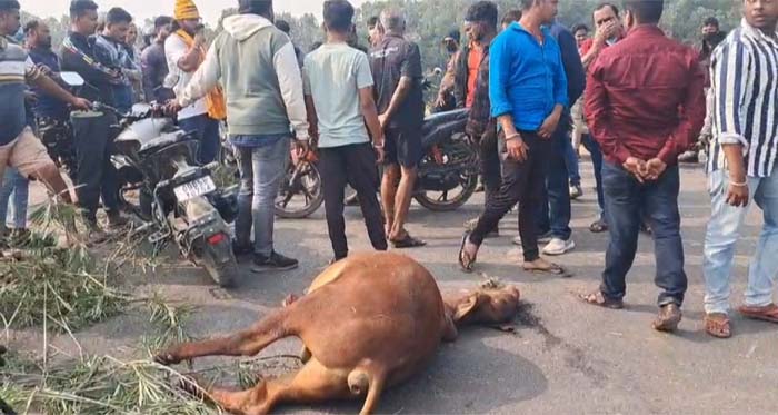 ୫୩ନଂ NH ଉପରେ ବୁଲା ଗୋରୁଙ୍କ ମୃତ୍ୟୁ ପ୍ରତିବାଦରେ ରାସ୍ତା ରୋକ