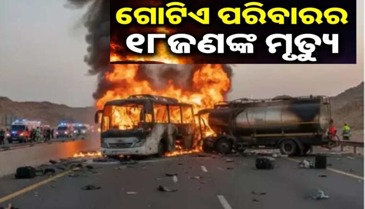 ନୂଆଦିଲ୍ଲୀ : ସୋମବାର ସାଉଦି ଆରବର ମଦିନା ନିକଟରେ ଏକ ବଡ଼ ସଡ଼କ ଦୁର୍ଘଟଣା ଘଟିଥିଲା। ଉମରା କରିବାକୁ ଯାଉଥିବା ଅନେକ ଭାରତୀୟ ଦୁର୍ଘଟଣାର ଶିକାର ହୋଇ ପ୍ରାଣ ହରାଇଥିଲେ। ତୀର୍ଥଯାତ୍ରୀଙ୍କୁ ନେଇ ଯାଉଥିବା ବସ୍ ଏକ ଡିଜେଲ ଟ୍ୟାଙ୍କର ସହିତ ଧକ୍କା ଖାଇବା ଫଳରେ ବସଟି ଜଳିଯାଇଥିଲା, ଯାହା ଫଳରେ ପ୍ରାୟ ୪୫ଜଣ ଲୋକ ଜୀବନ୍ତ ଦଗ୍ଧ ହୋଇଯାଇଥିଲେ। ସୋମବାର ସକାଳେ ମୁଫାରିହାତ ଅଞ୍ଚଳ ନିକଟରେ ଏହି ଦୁର୍ଘଟଣା ଘଟିଥିବା ବେଳେ ଏହି ଦୁର୍ଘଟଣାରେ ଗୋଟାଏ ପରିବାରର ୧୮ଜଣଙ୍କ ମୃତ୍ୟୁ ହୋଇଥିବା ସାମ୍ନାକୁ ଆସିଛି।