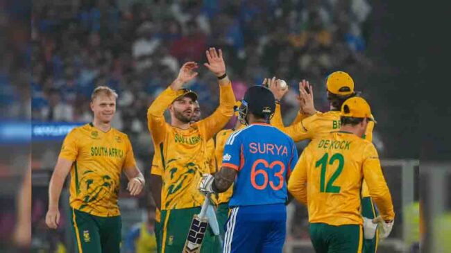 ନୂଆଦିଲ୍ଲୀ, ୨୩/୦୨ : ସୁପର-୮ର ପ୍ରଥମ ମ୍ୟାଚରେ ଅତି ଶୋଚନୀୟ ପରାଜୟ ଭୋଗିଛି ଭାରତୀୟ ଟିମ୍ । ୧୮.୫ ଓଭରରେ ମାତ୍ର ୧୧୧ ରନରେ ଅଲଆଉଟ୍ ହୋଇଛି ଟିମ୍ ଇଣ୍ଡିଆ । ଆଉ ଏହା ସହ ଦକ୍ଷିଣ ଆଫ୍ରିକା ୭୬ ରନର ବିଶାଳ ବିଜୟ ହାସଲ କରିଛି । ଦକ୍ଷିଣ ଆଫ୍ରିକାର ଦମଦାର ବ୍ୟାଟିଂ ପରେ ଘାତକ ବୋଲିଂ ଭାରତୀୟ ଟିମର ଲଗାତାର ବିଜୟରେ ବ୍ରେକ୍ ଲଗାଇଛି । ଅହମ୍ମଦାବାଦର ନରେନ୍ଦ୍ର ମୋଦି ଷ୍ଟାଡିୟମରେ ଆଇସିସି ପୁରୁଷ ଟି-୨୦ ବିଶ୍ୱକପ୍ ୨୦୨୬ର ସୁପର-୮ ମୁକାବିଲାରେ ଦକ୍ଷିଣ ଆଫ୍ରିକା ଏବଂ ଭାରତ ମଧ୍ୟରେ ଖେଳା ଯାଇଥିଲା। ପ୍ରଥମେ ବ୍ୟାଟିଂ କରି ଦକ୍ଷିଣ ଆଫ୍ରିକା ୧୮୭ ରନ୍ କରିଥିଲା । ମ୍ୟାଚ୍ରେ ଦକ୍ଷିଣ ଆଫ୍ରିକା ଟସ୍ ଜିତି ପ୍ରଥମେ ବ୍ୟାଟିଂ ନିଷ୍ପତ୍ତି ନେଇଥିଲା । ଗତ ଦୁଇ ମାସ ମଧ୍ୟରେ ଏହା ଦୁଇ ଦଳ ମଧ୍ୟରେ ଷଷ୍ଠ ମୁକାବିଲା ହେଉଛି। କିନ୍ତୁ ଏହି ବିଶ୍ୱକପରେ ପ୍ରଥମ ଥର ମୁହାଁମୁହିଁ ହୋଇଛନ୍ତି ଦୁଇ ଦଳ। ଦକ୍ଷିଣ ଆଫ୍ରିକା ପକ୍ଷରୁ ଡେଭିଡ ମିଲର ସର୍ବାଧିକ ୬୩ ରନ୍ କରିଥିବା ବେଳେ ଡିୱାଲ୍ଡ ବ୍ରେଭିସ ୪୫ ଓ ଟ୍ରିଷ୍ଟାନ ଷ୍ଟବ୍ସ ୪୪ ରନ୍ କରିଥିଲେ।ଭାରତ ପକ୍ଷରୁ ଜସପ୍ରୀତ ବୁମରା ସର୍ବାଧିକ ୩ଟି ୱିକେଟ୍ ନେଇଥିବା ବେଳେ ଅର୍ଶଦୀପ ସିଂହ ଦୁଇଟି ଓ ଶିବମ ଦୁବେ ଓ ବରୁଣ ଚକ୍ରବର୍ତ୍ତୀ ଗୋଟିଏ ଲେଖାଏ ୱିକେଟ୍ ନେଇଥିଲେ ।